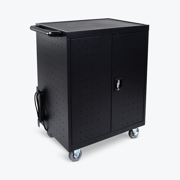 Luxor Charging Cart Steel 32 Tablets Chromebooks Rolling 4 Casters Includes 32 Outlet Surge 450 Joules Protection 10ft Cord Sloped & Padded Compartments