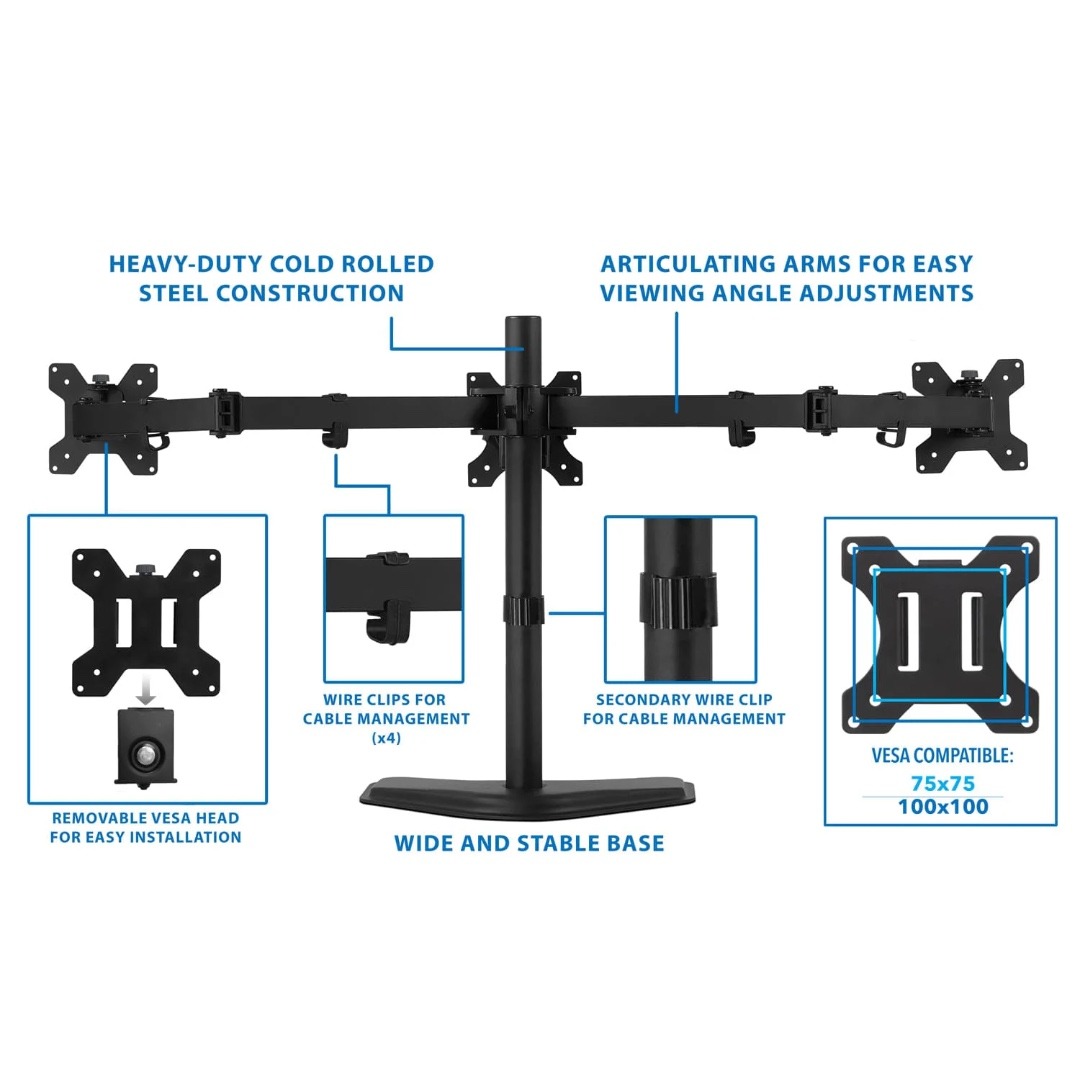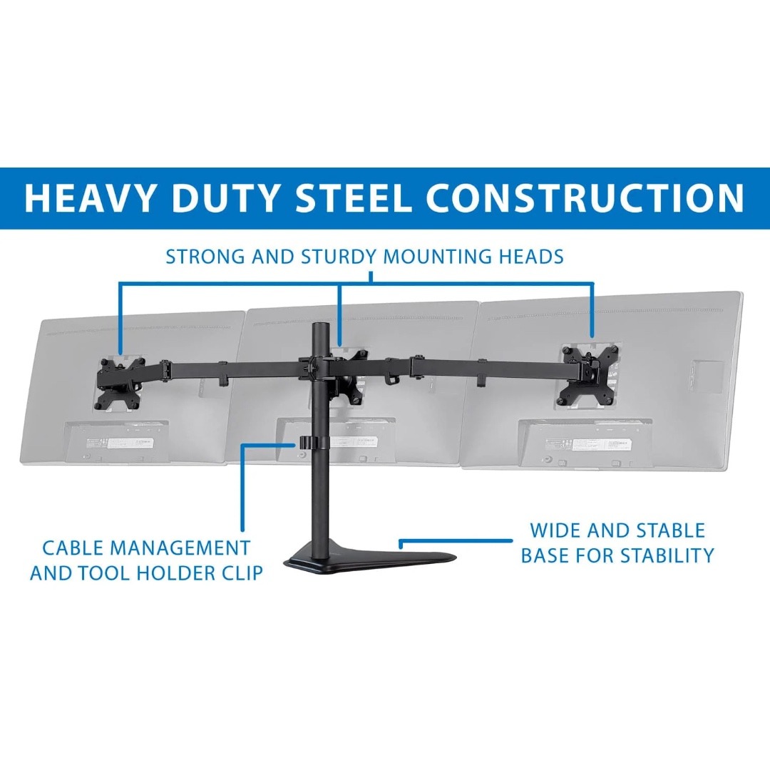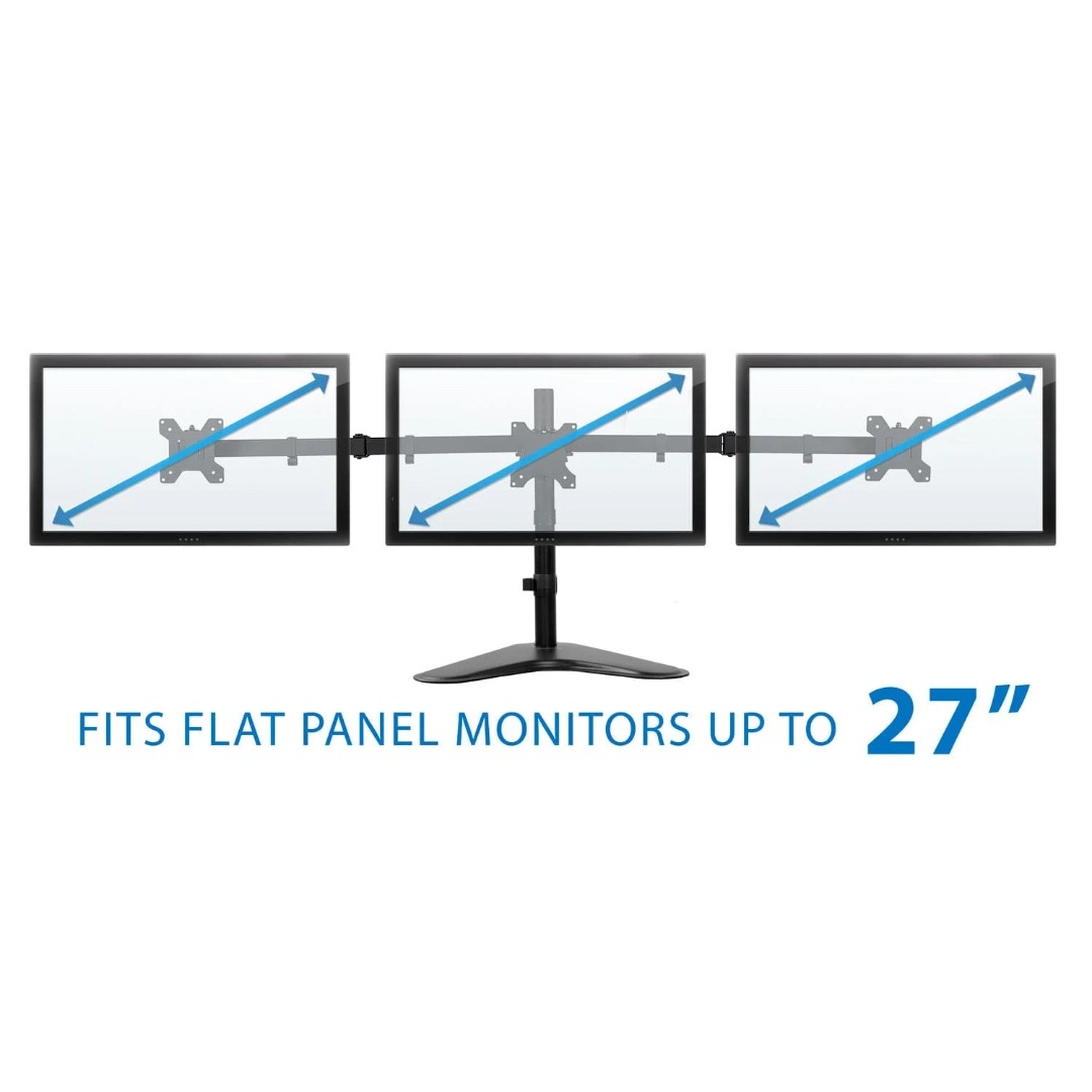 Mount-It! Triple Monitor Desk Stand Up to 27 In Monitors 15.4 lbs per Arm Tilt and Swivel Integrated Cable Management Steel Construction – Black