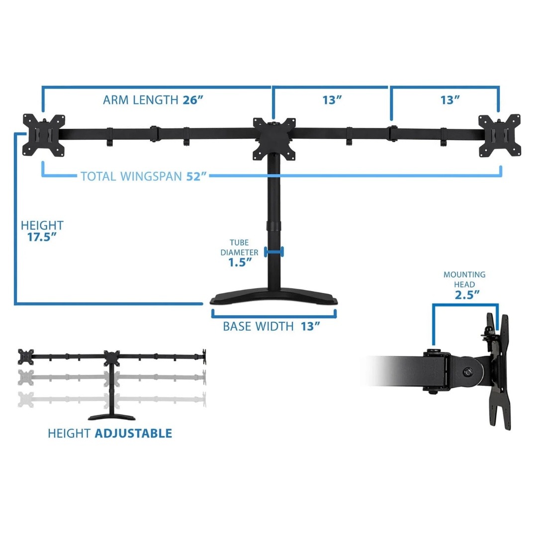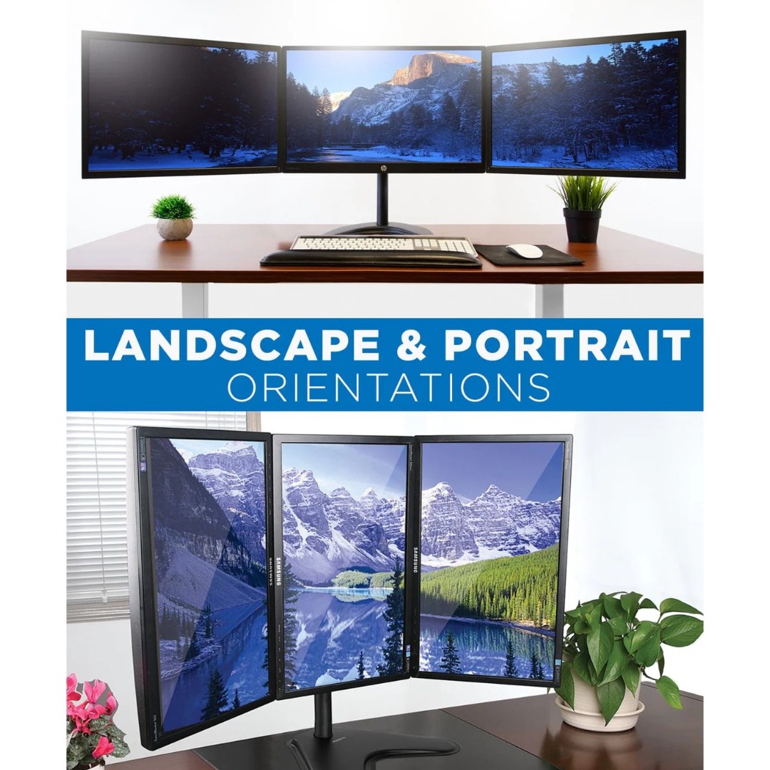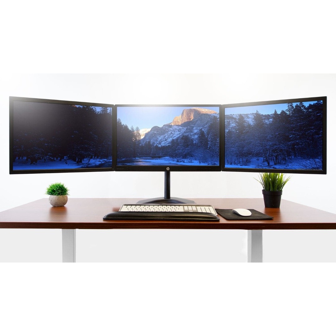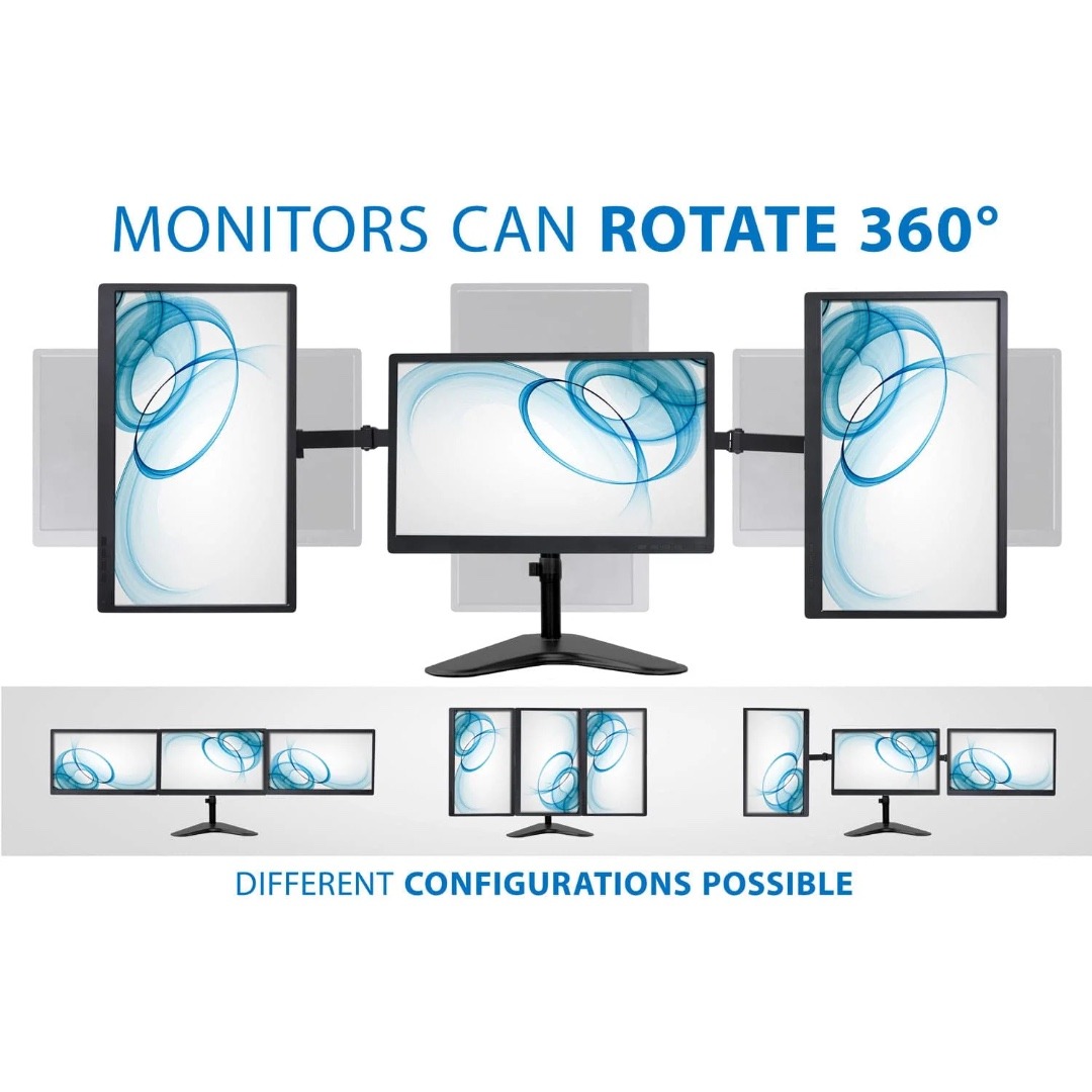 Mount-It! Triple Monitor Desk Stand Up to 27 In Monitors 15.4 lbs per Arm Tilt and Swivel Integrated Cable Management Steel Construction – Black